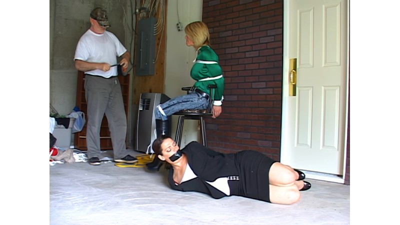 Agent Rachael Tenn has been taken prisoner and is placed in a hogtie by Carissa, the crime boss's girlfriend. Carissa takes great delight in payback, and when it comes time to gag Rachael, she goes to find a pair of her dirty panties to stuff into Rachael's mouth before applying the duct tape. Then, the tables turn for Carissa: Since she led the federal agent into the house, the boss has decided she is now too much of a liability. He forces her to sit on a stool and he sets about tying her up and gagging her. Now that the house has been compromised, he has no choice but to blow it up, and sets a bomb with just ten minutes on the counter before it explodes, taking Agent Tenn and Carissa with it. Will either of the women get free in time to save the day?